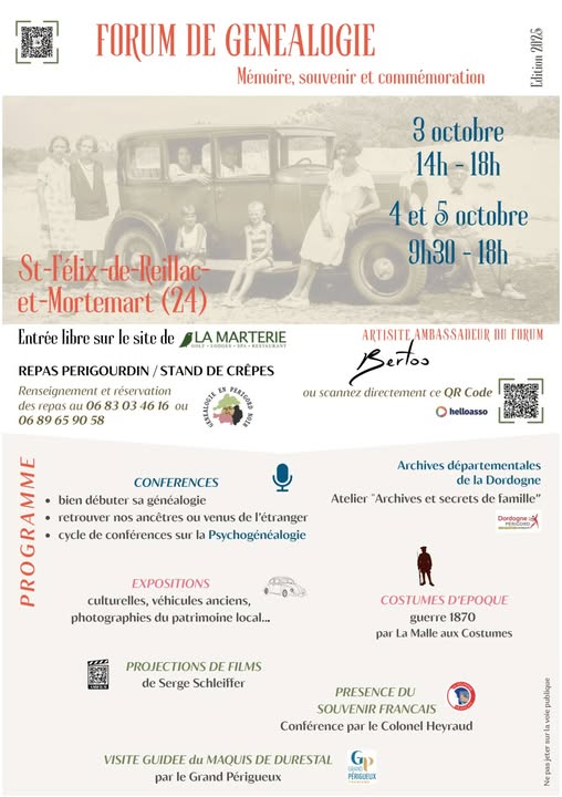 L’association Généalogique de la Charente sera présente et tiendra un stand au salon organisé à St-Félix-de-Reillac-et-Mortemart.